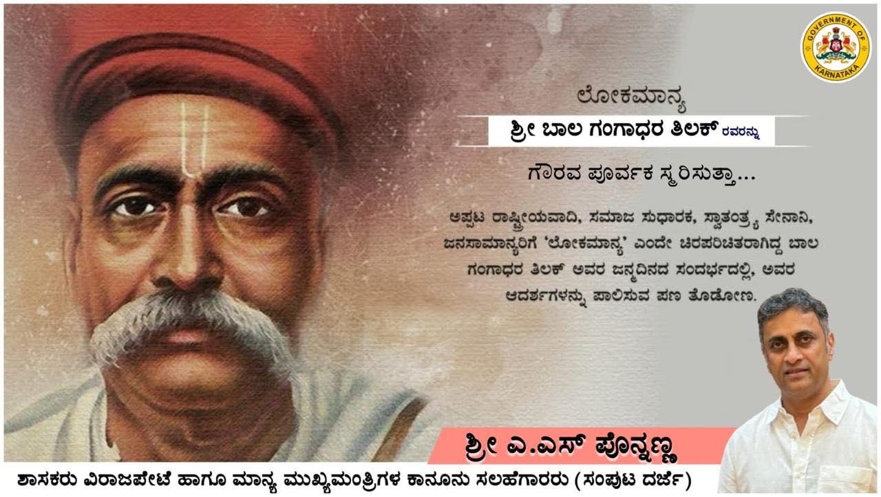 ಲೋಕಮಾನ್ಯ ಶ್ರೀ ಬಾಲ ಗಂಗಾಧರ ತಿಲಕ್ ರವರನ್ನು ಗೌರವ ಪೂರ್ವಕ ಸ್ಮರಿಸುತ್ತಾ ಅಪ್ಪಟ ರಾಷ್ಟ್ರೀಯವಾದಿ, ಸಮಾಜ ಸುಧಾರಕ, ಸ್ವಾತಂತ್ರ್ಯ ಸೇನಾನಿ, ಜನಸಾಮಾನ್ಯರಿಗೆ 'ಲೋಕಮಾನ್ಯ' ಎಂದೇ ಚಿರಪರಿಚಿತರಾಗಿದ್ದ ಬಾಲ ಗಂಗಾಧರ ತಿಲಕ್ ಅವರ ಜನ್ಮದಿನದ ಸಂದರ್ಭದಲ್ಲಿ ಅವರ ಆದರ್ಶಗಳನ್ನು ಪಾಲಿಸುವ ಪಣ ತೊಡೋಣ.