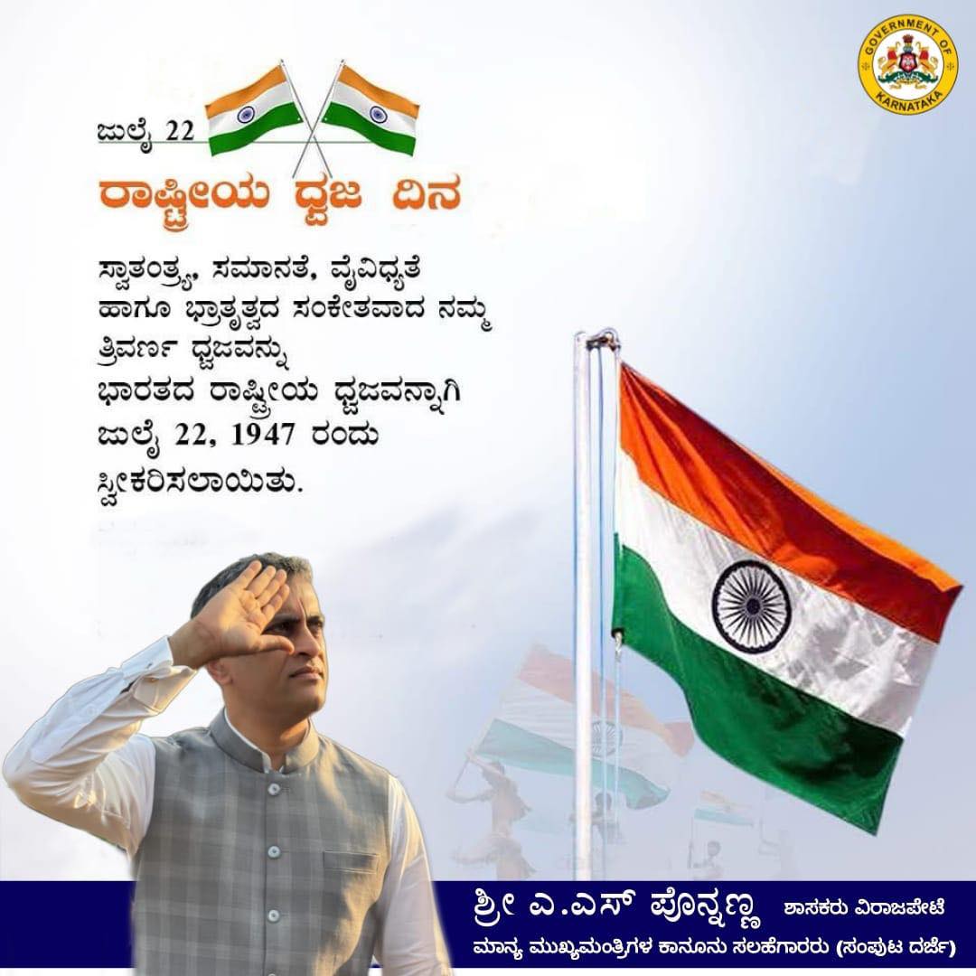 ಸ್ವಾತಂತ್ರ್ಯ,ಸಮಾನತೆ, ವೈವಿಧ್ಯತೆ ಹಾಗೂ ಭ್ರಾತೃತ್ವದ ಸಂಕೇತವಾದ ನಮ್ಮ ತ್ರಿವರ್ಣ ಧ್ವಜವನ್ನು ಭಾರತದ ರಾಷ್ಟ್ರೀಯ ಧ್ವಜವನ್ನಾಗಿ ಜುಲೈ 22, 1947 ರಂದು ಸ್ವೀಕರಿಸಲಾಯಿತು
