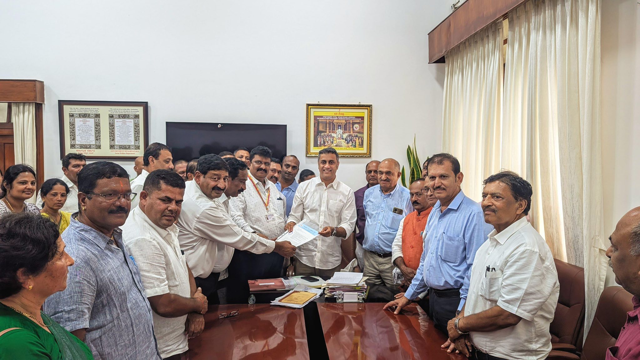 At my office in Bangalore Vidhana Soudha, the leaders of Kodagu Half language Gowda community met and thanked them for the assurance of granting the construction of Bhagamandala Half Gowda community. Meanwhile submitted a request letter of many important , 22/07/2025