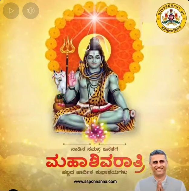 ನಾಡಿನ ಸಮಸ್ತ ಜನತೆಗೆ ಮಹಾಶಿವರಾತ್ರಿ ಹಬ್ಬದ ಶುಭಾಶಯಗಳು.