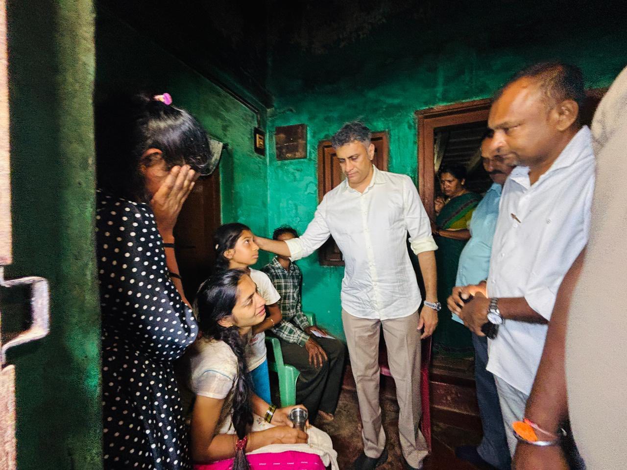 A student died in a fire accident today at a non-government service organization called Katakeri Har Mandir, Madikeri taluk, met two students who were injured and consoled them. Visited the house of a deceased student in Chettimani and consoled the family, 09/10/2025