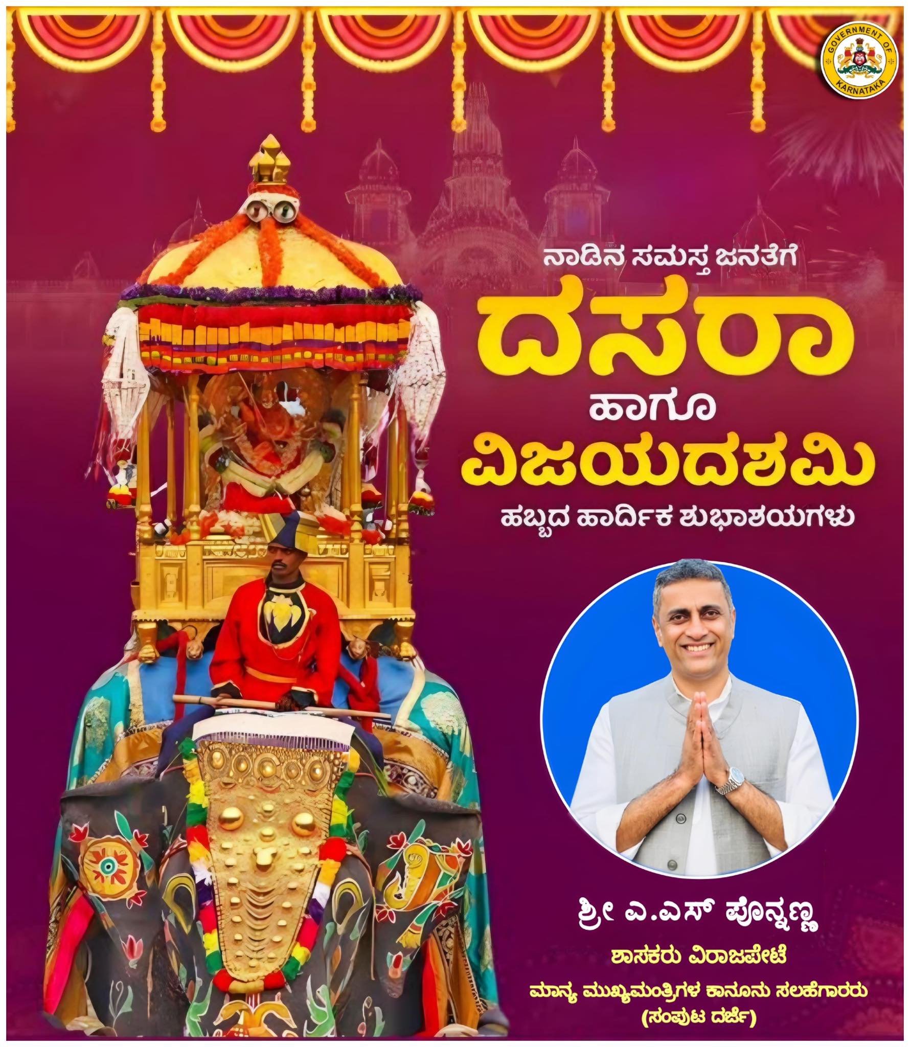 ನಾಡಿನ ಸಮಸ್ತ ಜನತೆಗೆ ದಸರಾ ಹಾಗೂ ವಿಜಯದಶಮಿ