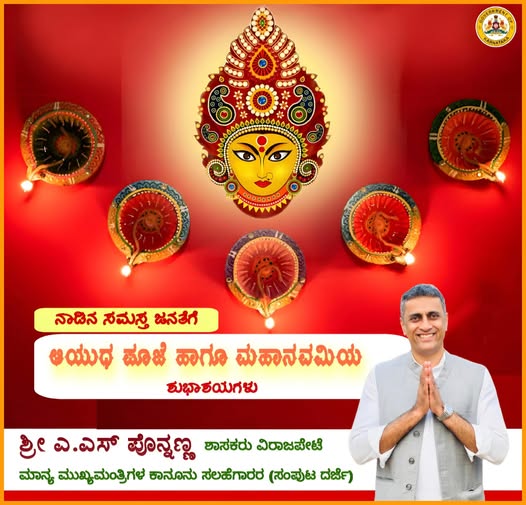 ನಾಡಿನ ಸಮಸ್ತ ಜನತೆಗೆ ಆಯುಧ ಪೂಜೆ ಹಾಗೂ ಮಹಾನವಮಿಯ ಶುಭಾಶಯಗಳು.